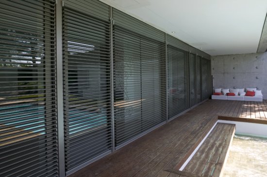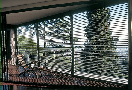 La orientación de las lamas, además de regular la luz, también proporciona una total discreción. Permite ver el paisaje sin ninguna alteración pero impide miradas indiscretas al interior. También permite limpiarla con facilidad.