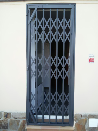 Las rejas de ballesta, también llamadas rejas de tijera, son prácticas y funcionales pues tienen apertura total para los momentos en los que no nos hace falta su utilización. Se pueden fabricar plegables y giratorias 180 grados con 1 y 2 hojas. También para su comodidad se pueden fabricar utilizando la misma llave para todas las rejas de la misma vivienda.