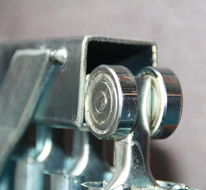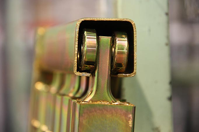 Punto de unión de las dos mitades plegables de la guía inferior, con troquel integrado para evitar la aparición de óxidos.