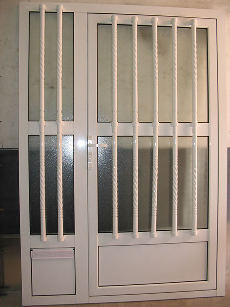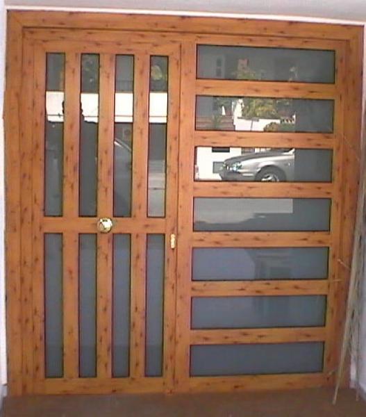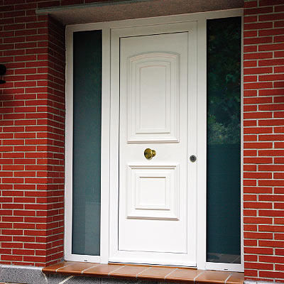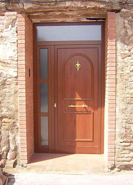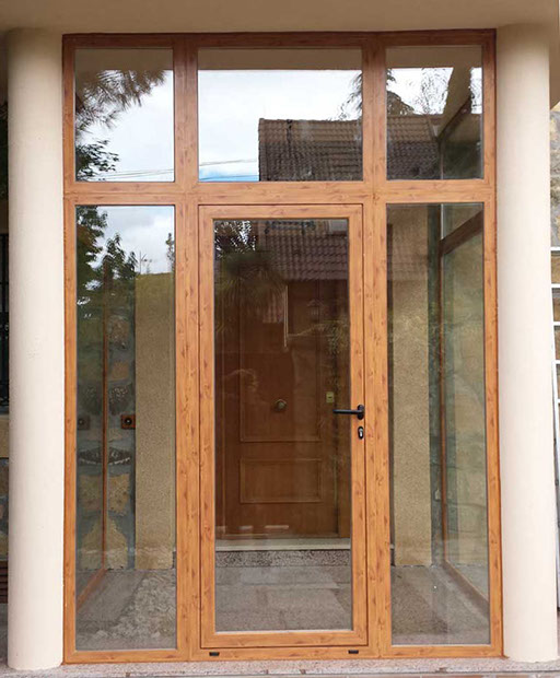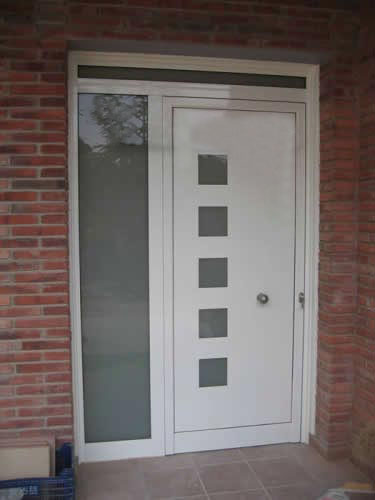 Las puertas de entrada de aluminio practicables con panel sandwich decorativo se pueden fabricar en modelos distintos a gusto de los clientes, pueden ser colores combinados como en aluminio lacado blanco y aluminio imitación madera. El tipo de aluminio puede ser aluminio normal o rotura de puente térmico (RPT).
