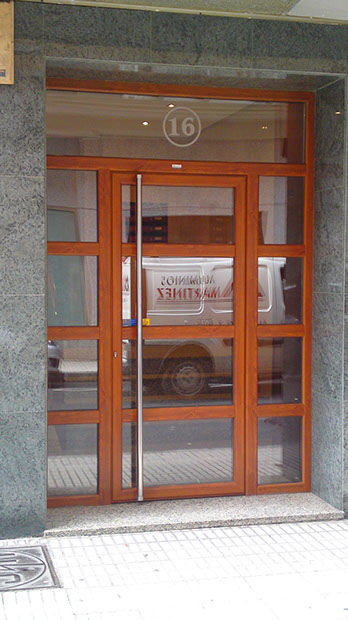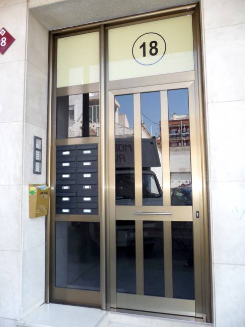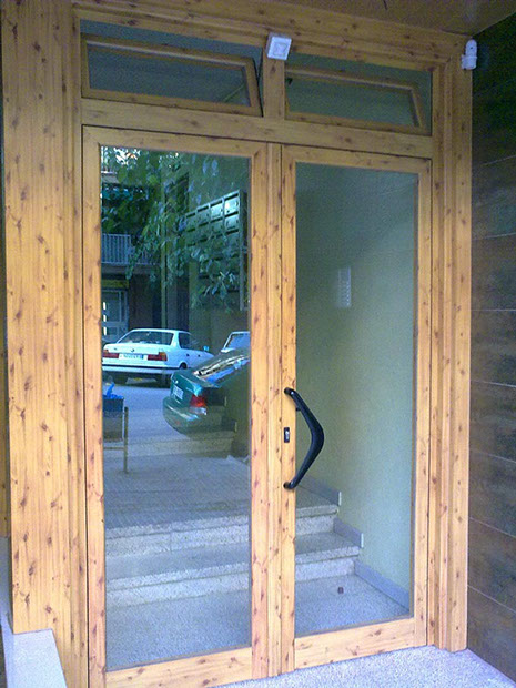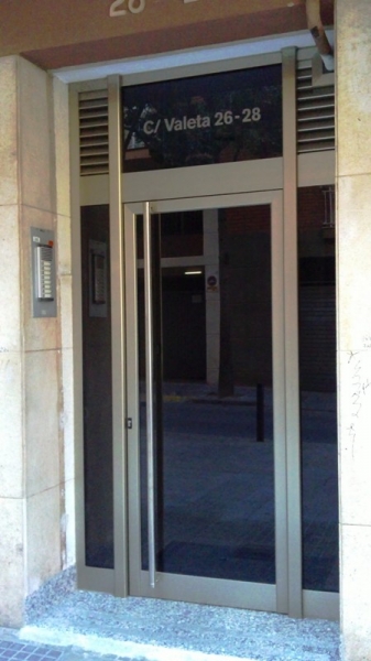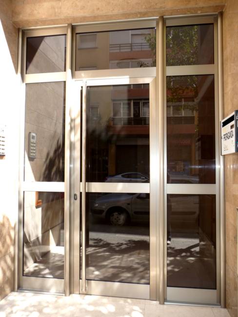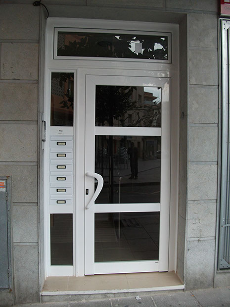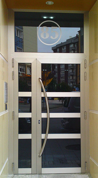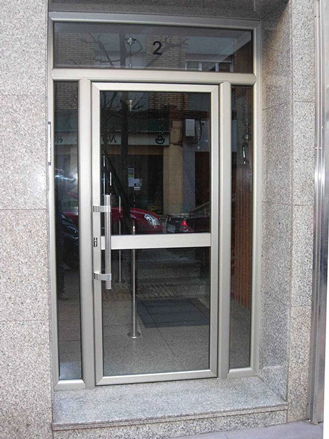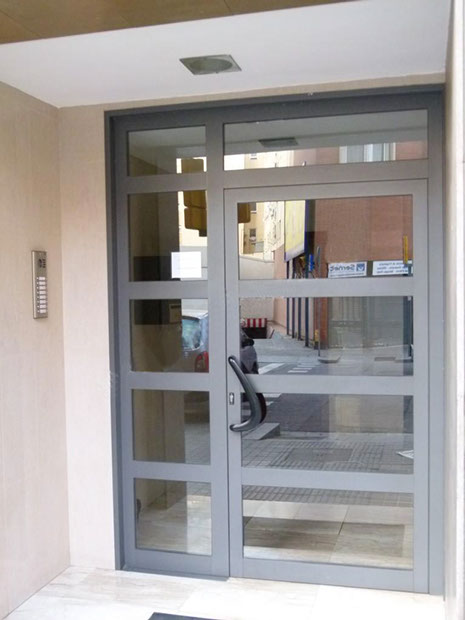 Las puertas de comunidad ofrecen muchas posibilidades en cuanto a estética y funcionalidad, escogiendo los colores antes mencionados y combinando la puerta con fijos. Al ser entradas de comunidad, es recomendable un vidrio laminado transparente para dar seguridad y luz.