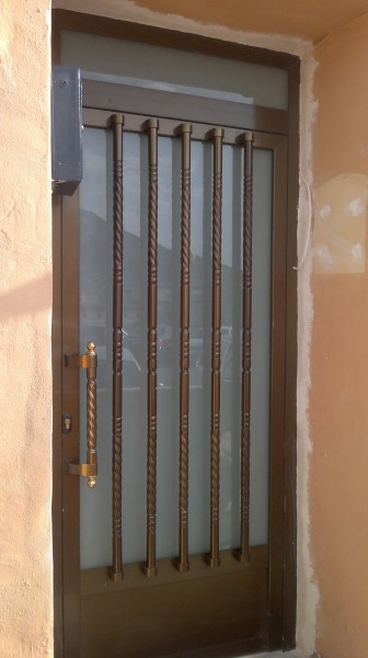 La puerta de entrada es donde tendremos que tener mas precauciones para que los ladrones no entren. La solución sería, además de contar con una perfilería robusta, una cerradura de golpe y llave con tres puntos de cierre con un bombín de seguridad antitaladro con llave de puntos. Además, contaremos con tres bisagras reforzadas tipo XL o XXL (como las bisagras de las puertas de los bancos). Así evitaremos que nos abran mediante palanca o radiografía y les será muy complicado romper o forzar el bombín.