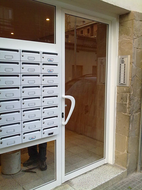 Hay la opción de añadir en los fijos los buzones, de apertura interior, para mas comodidad y seguridad para cartero y vecinos al poder colocar las cartas por la calle y recogerlas por el interior. Opciones adicionales como cerraduras de tres puntos, cerraduras electromecánicas y los muelles cierrapuertas, ayudan en la seguridad y funcionalidad de la puerta. Otro elemento más de la estética de la puerta es el tirador, los tiradores en inox con formas o los tubulares de 2 m. en vertical, son los ideales al combinar diseño y resistencia.