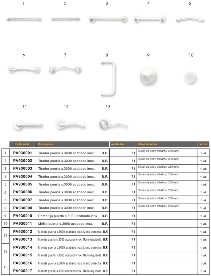 accesorios puerta, paneles decorativos, accesorios panel puerta, tiradores, manetas, pomos, picafortes, mirillas
