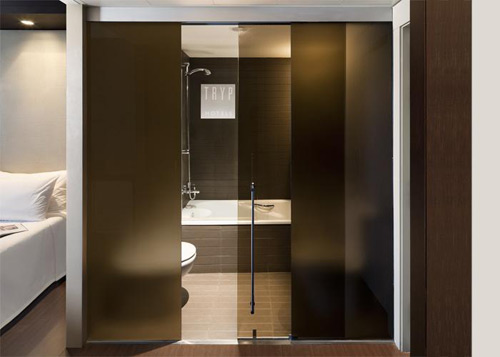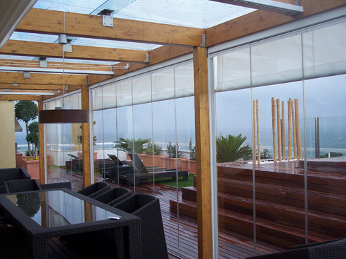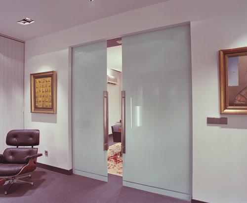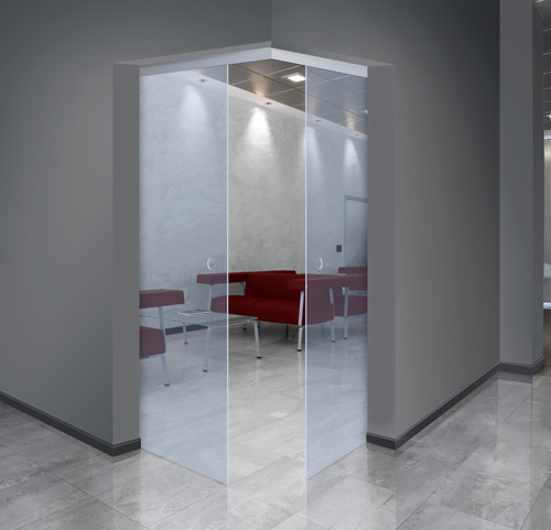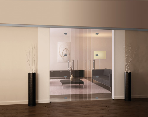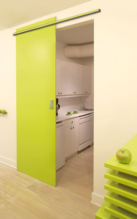 Adosadas a una rueda externa, las puertas se deslizan a lo largo de polos de acero inoxidable acristalado, que le da un acabado agradable. Un atributo que hace a la practicidad de las puertas, es que los rieles se pueden abrir hacia ambos lados de la puerta, o bien hacia una única dirección.