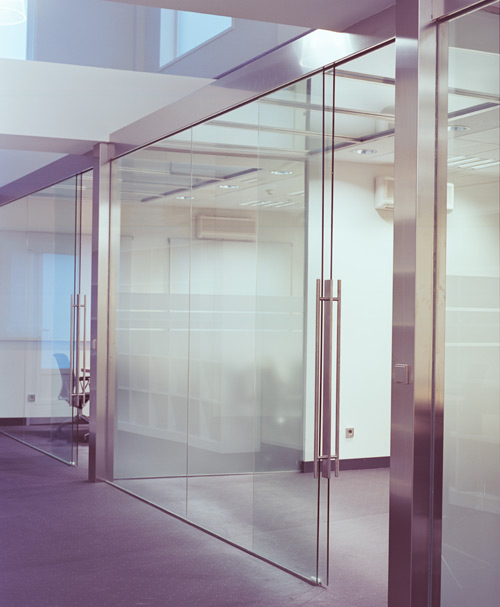 Sistema para puertas correderas de cristal de hasta 120 kg. por hoja, realizado en acero inoxidable. El perfil superior de forma circular tiene la robustez para soportar el peso de distintas hojas colocando los soportes en los lugares indicados. Las roldanas son de rodamiento a bolas y de acero inoxidable. El modelo dispone de soportes para pared, vidrio y techo según el tipo de instalación a realizar, también de acero inoxidable y banda de rodadura de nylon negro. También dispone de guiador inferior. Uno de los requisitos de este modelo es que las hojas sean de vidrio templado ya que son mecanizadas. La espectacularidad de este modelo viene dado por su diseño y por todos sus mecanismos visibles. Vidrio 10/12 mm. Acabado inox mate.